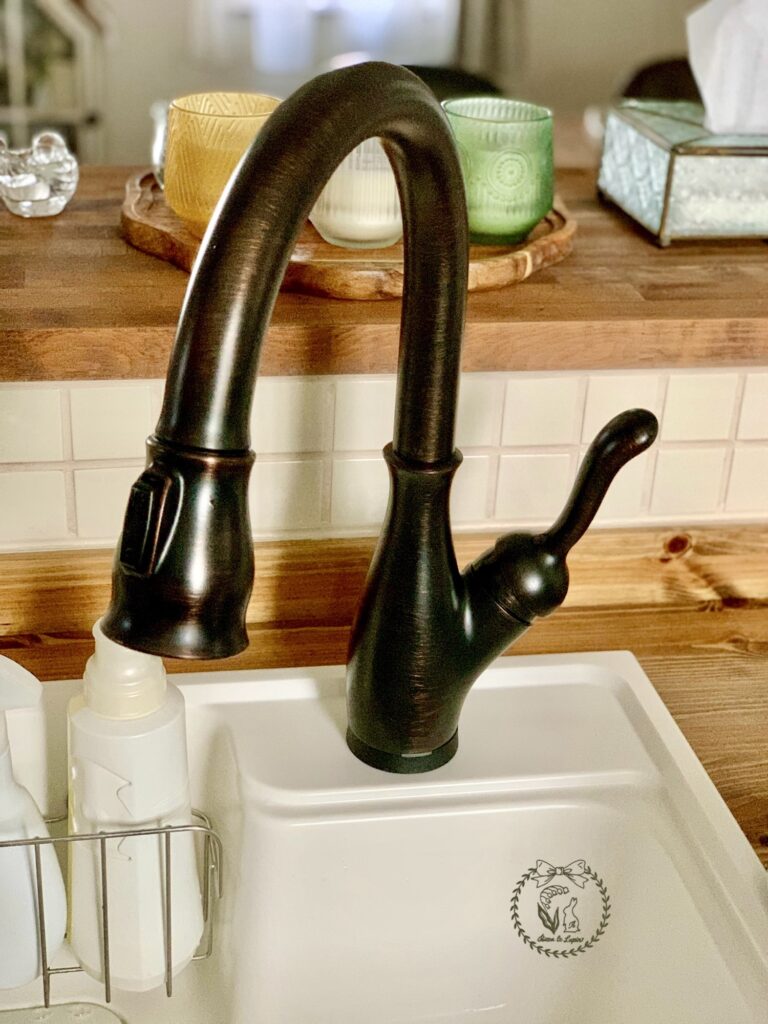キッチンの水栓については、『ブロンズ色&グースネック』が良いというのが何よりの優先事項でした。キャンドールさんのカントリーな木製キッチンに、シルバーのいかにもThe Japanな見た目の水栓はどう考えてもミスマッチなので、どこのメーカーの物が良いとかは無いけれど、とにかく色と形はこだわりたいと思っていました。