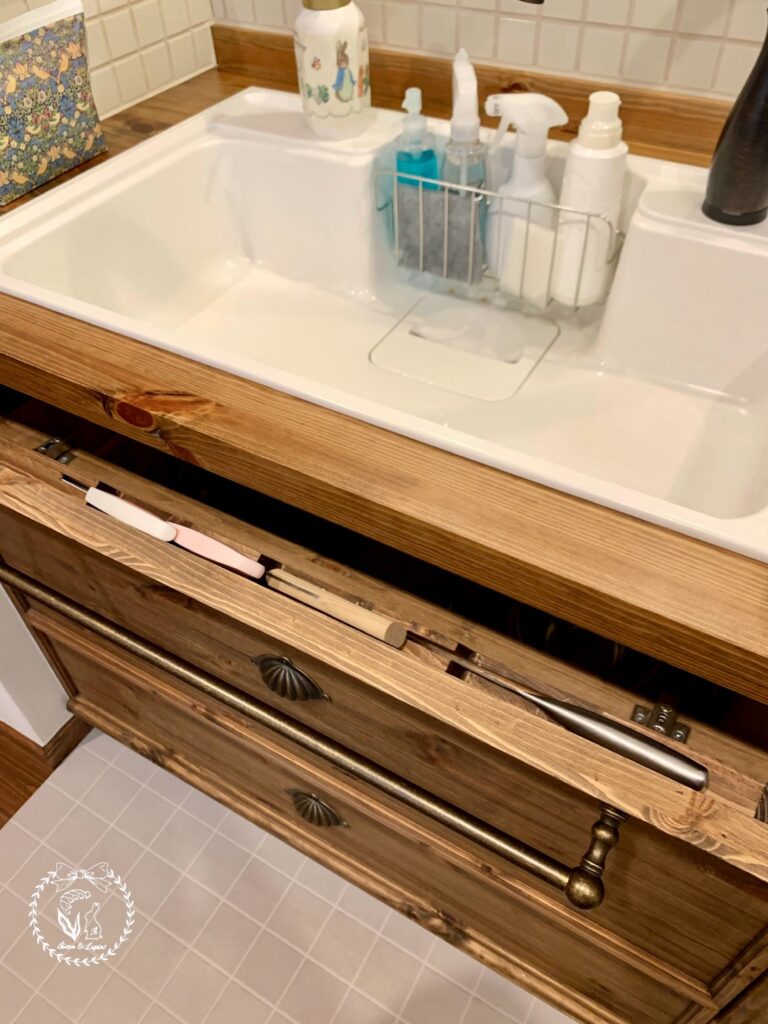 タオルバーを付けるかどうかは、オーダーなので自由です◎私達は、タオルバーはあった方が絶対に便利だろうという事で、水栓に近い場所に付けてもらいました。