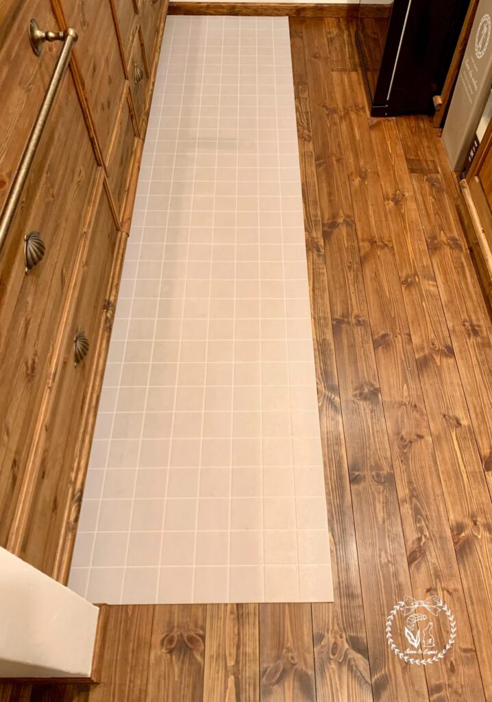 我が家では、キッチンのアイボリーのタイルに合わせて、タイル風のマットを使っています。