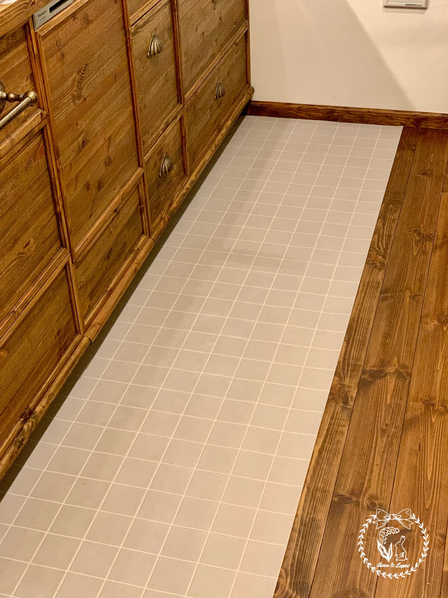 我が家では、キッチンのアイボリーのタイルに合わせて、タイル風のマットを使っています。
