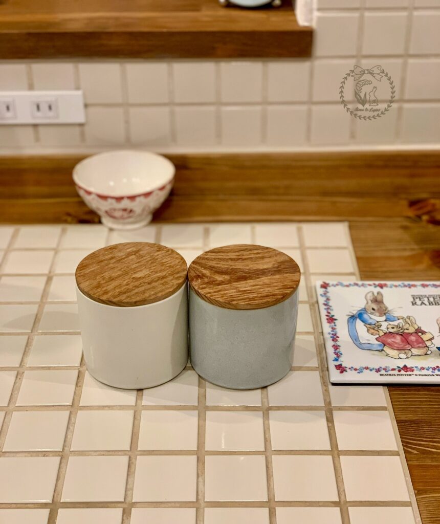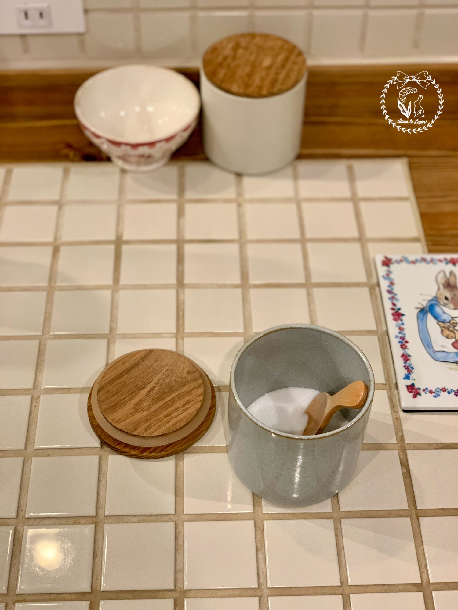 ずいぶん後ろ向きなことばかり前置きにしてしまいましたが、お家紹介はまだ一階すら終わっていないので、いつか終わりにするにしても、せめて全て紹介をし尽くしてから終わりにさせたいところです!今回は砂糖と塩を入れているキャニスターをご紹介します◎