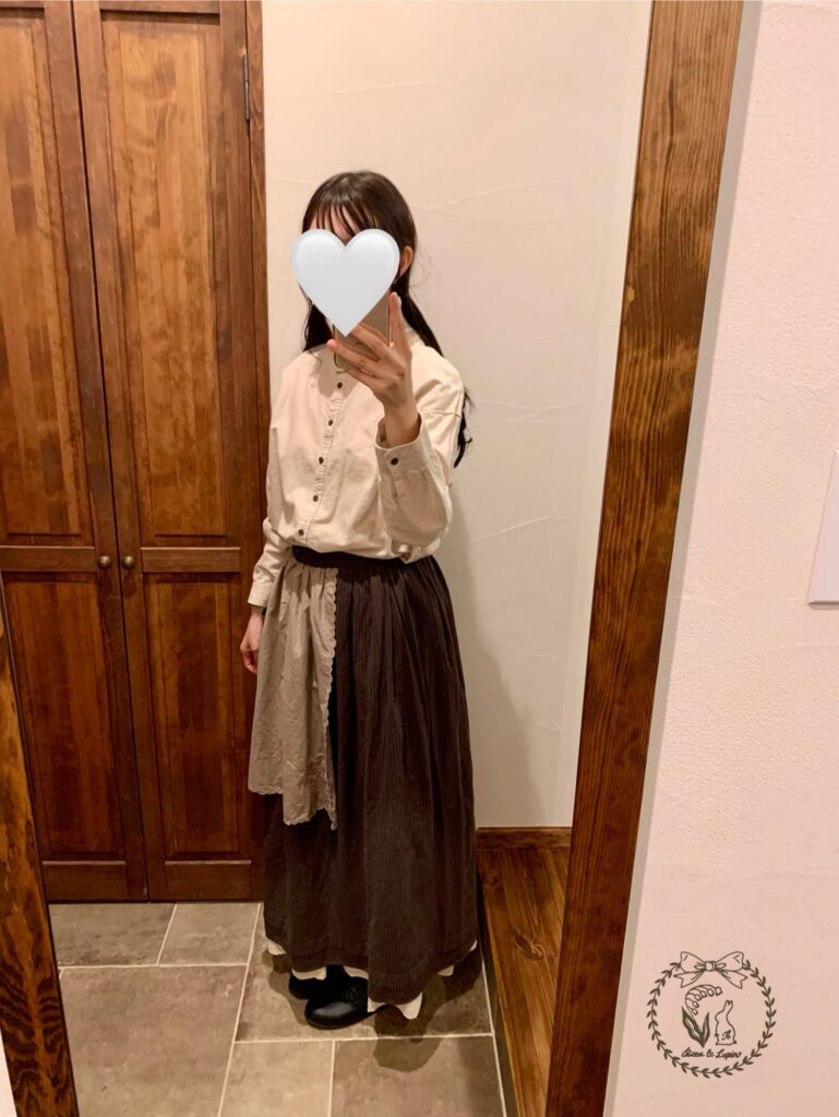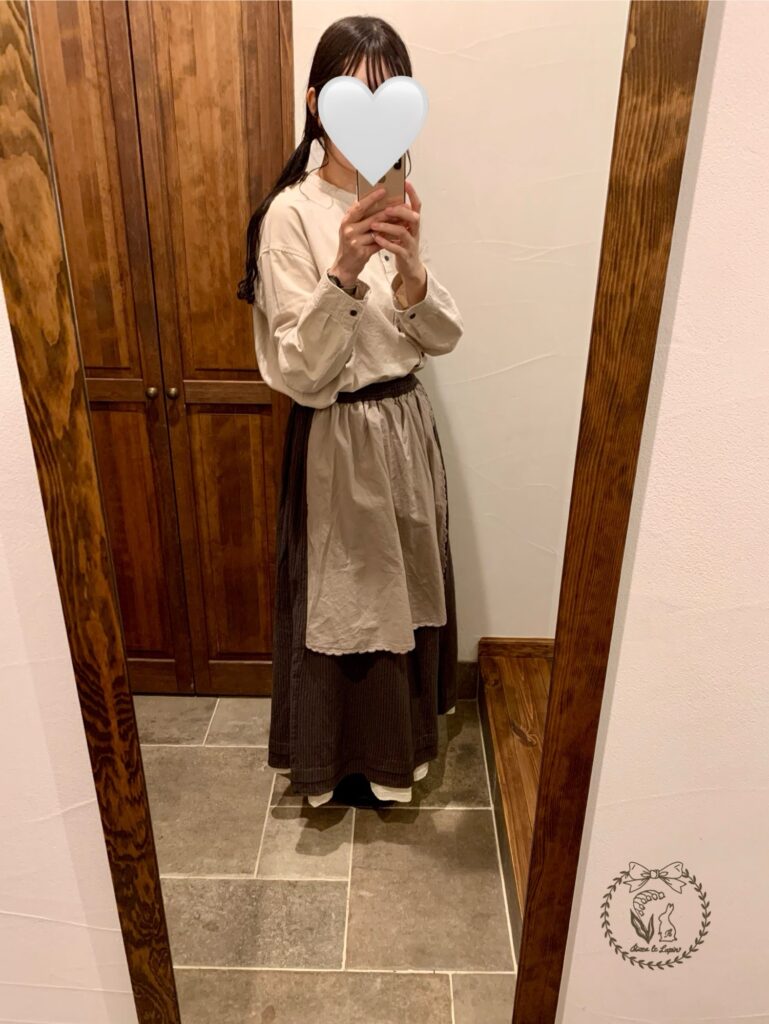 スカートに、エプロンのようなキルトが付いていて、カントリー大好きな私の好みにドストライクです(*´꒳`*)!!!