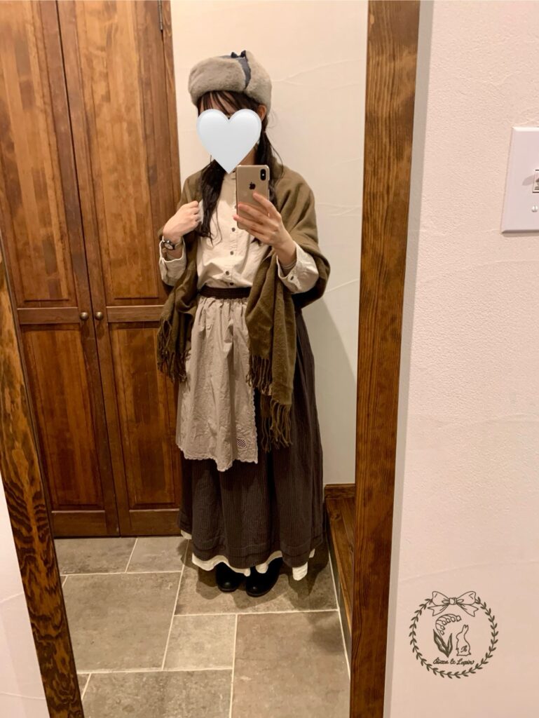 スカート以外は全てシャンブルです。ブラウスも帽子もショールも靴も、全部シャンブル!!靴下はたぶんしまむらだし、しまむらグループさんには本当にお世話になってますm(_ _)m