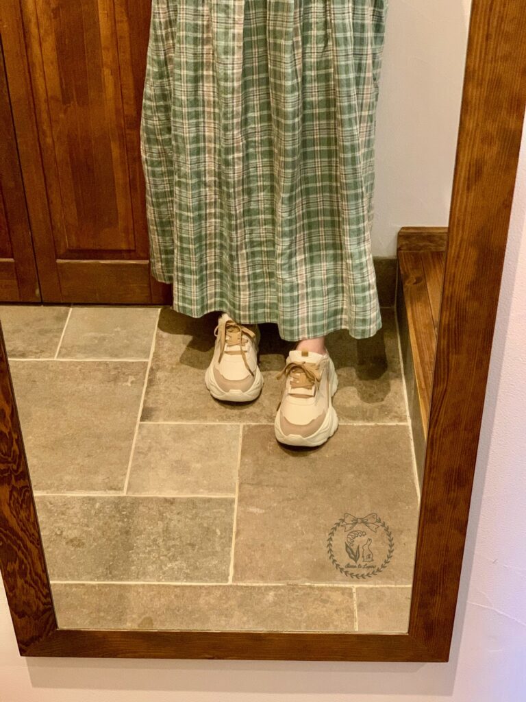 アプリでスニーカーを履いている店員さんのコーディネートを見て、あーこれはサマンサの服と相性良さそうだし良いなぁ〜とも思っていたんです。それで実際に商品を見て、ちゃっかり試着もさせてもらったら、あーこれは絶対に使える!!!と強く再認識して、お買い上げさせてもらいました。