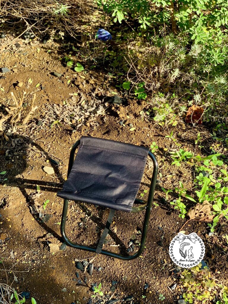 少しでも負荷を減らす為に、今までは汚れるのを覚悟で地面に膝をついたり、なるべく体に優しい体勢を工夫して作業をしていました。そんな話を夫にしていたら、小さい椅子でも買ってみたら?と言うので、お試しでダイソーのアウトドア用の小さい椅子を買ってきました。