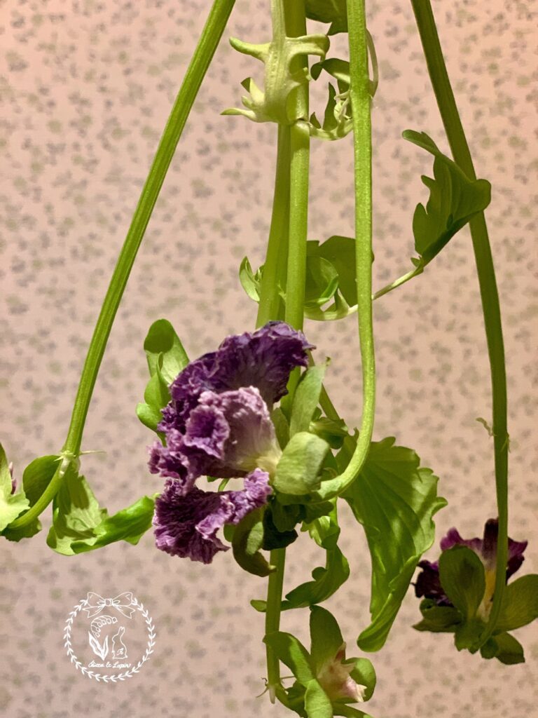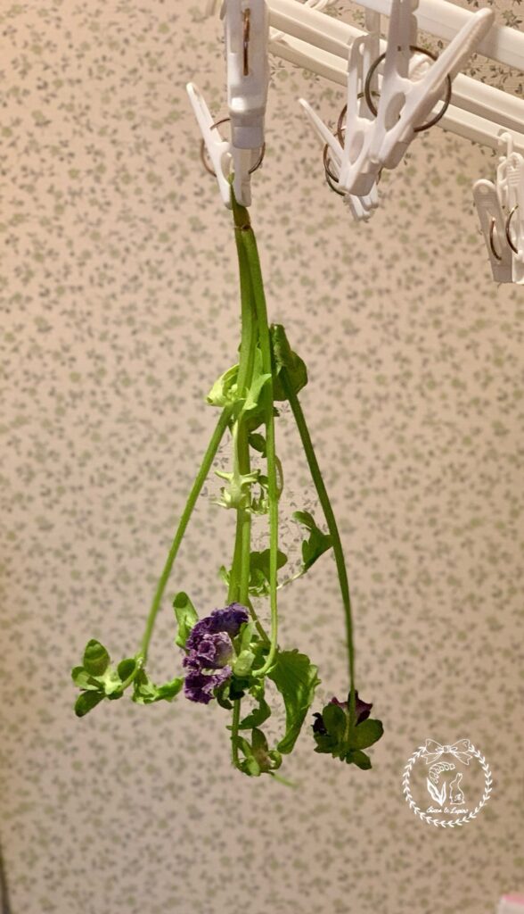 やっとタイトルの件について。切り花のビオラが萎れてきたので、試しにこのままドライフラワーチャレンジをしてみることにしました。