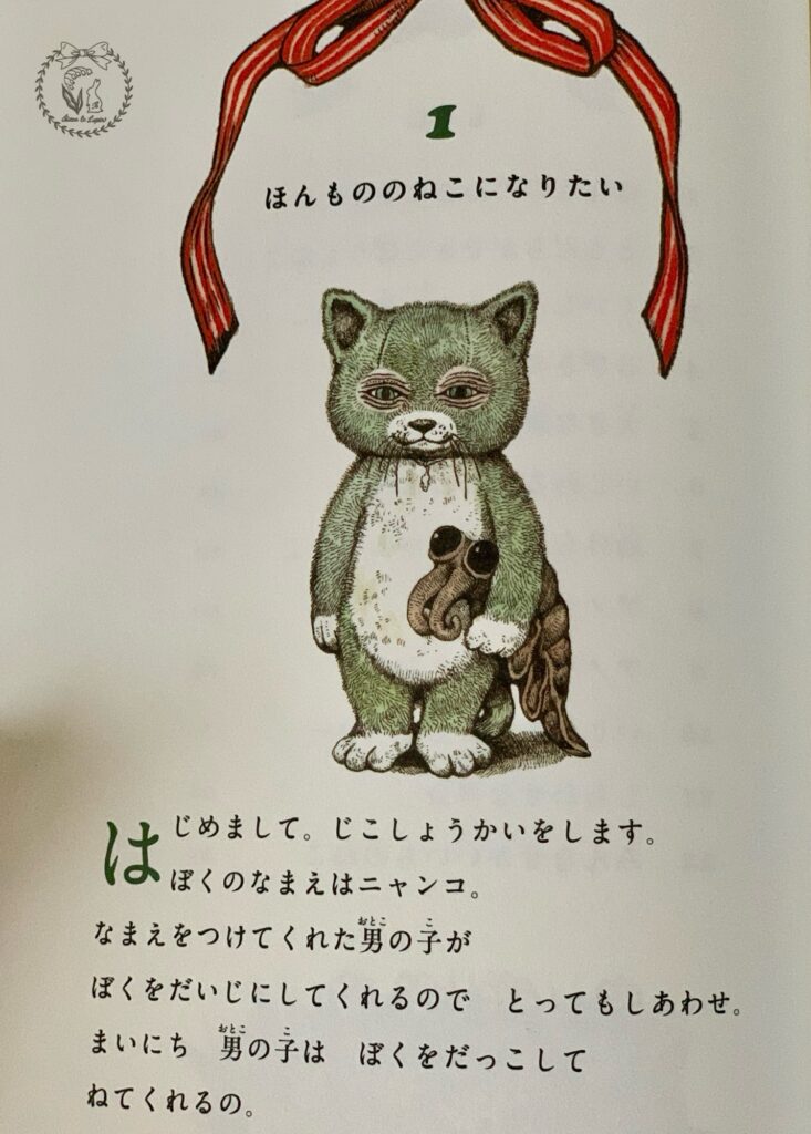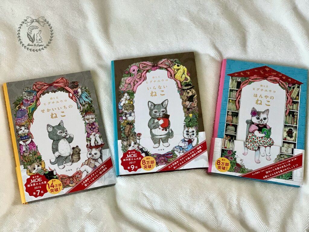 絵だけでなく文才も素晴らしくて、私はニャンコのシリーズの絵本を3冊持っているのですが、全て泣きました(T ^ T) 3作全てに登場するメインキャラクターのニャンコはぬいぐるみです。リボンとか、さりげない挿絵もぜんぶ素敵♡