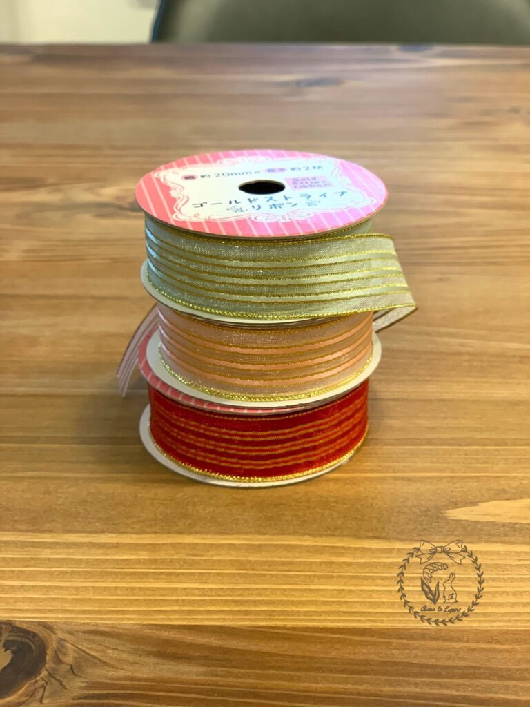 セリアで見つけた、ゴールドのラインが入ったリボンを使うことにしました⭐︎