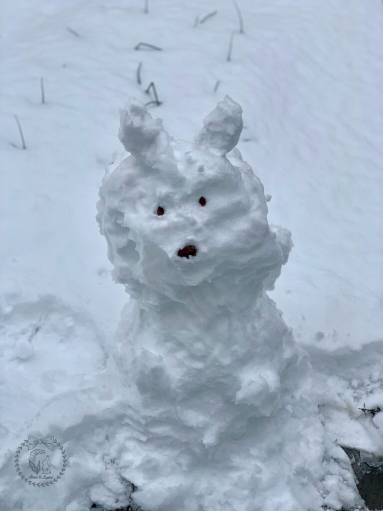 いつもいつも怒ってばかりの母の為に、うさぎの雪だるまを作ってくれました。名前はミッフィーにすると言うので、さすがにそれはそのまま過ぎるからやめた方が良いとアドバイスしました笑