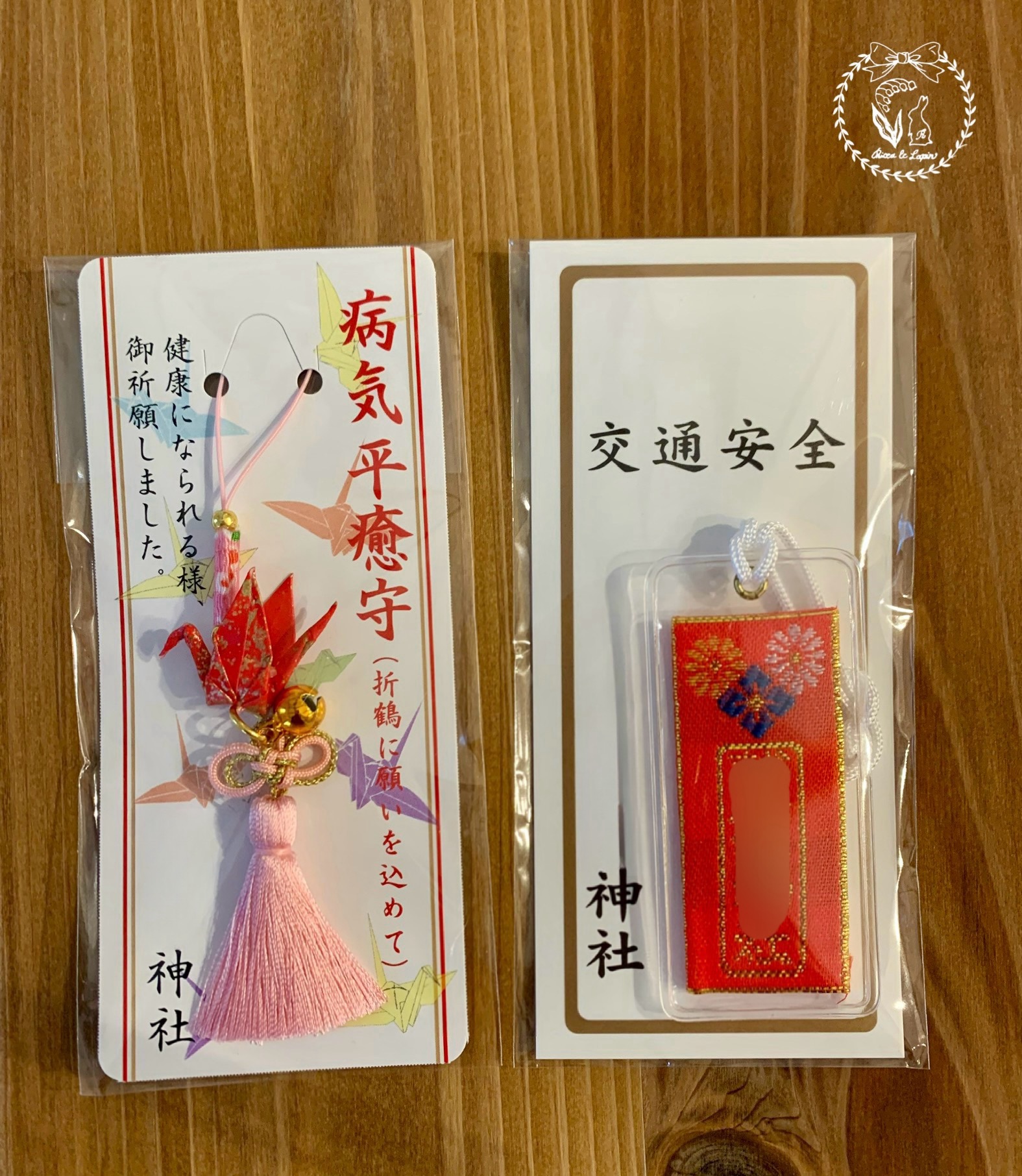 おみくじは引きませんでしたが、車の中に入れておく為の交通安全守と、私の個人的な問題である病気平癒守を買いました。写真は神社名だけ編集して消してあります。息子にも、ランドセルに入れておく子供用の御守りを買いました。