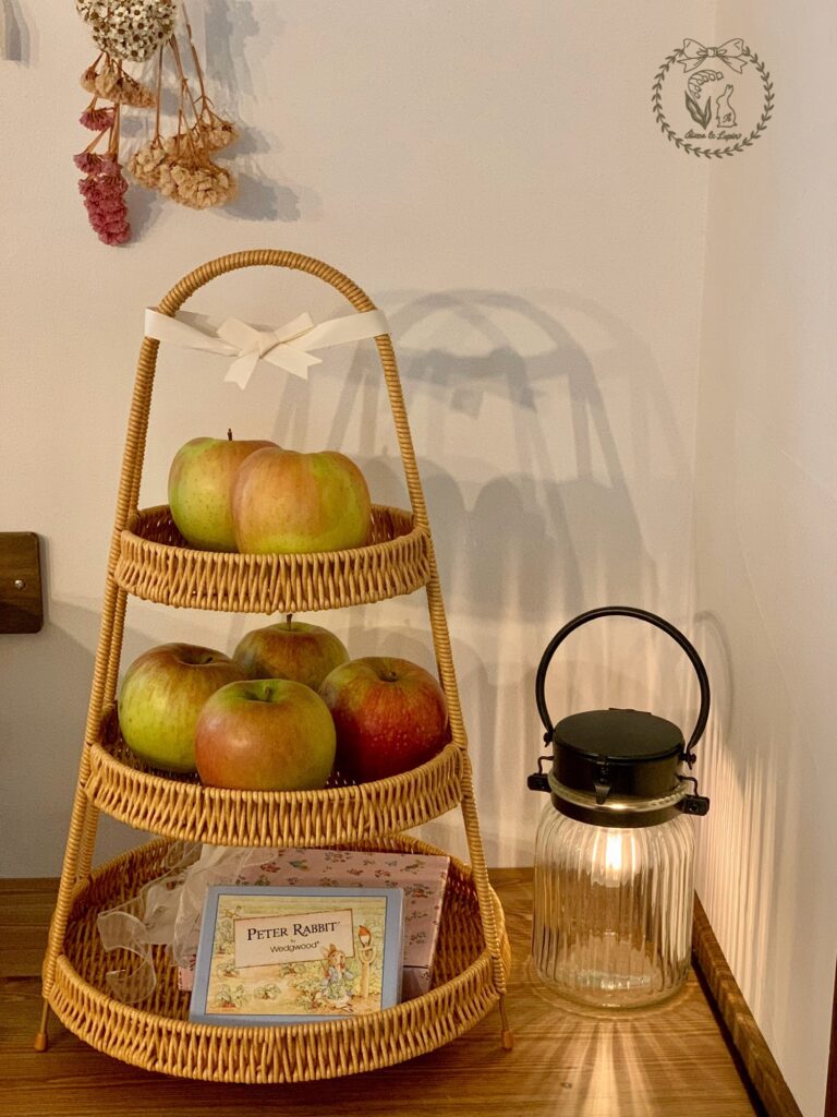 そうそう、この時はりんごを買ったばかりだったので、フルーツバスケットにりんごがたくさん乗っていました◎