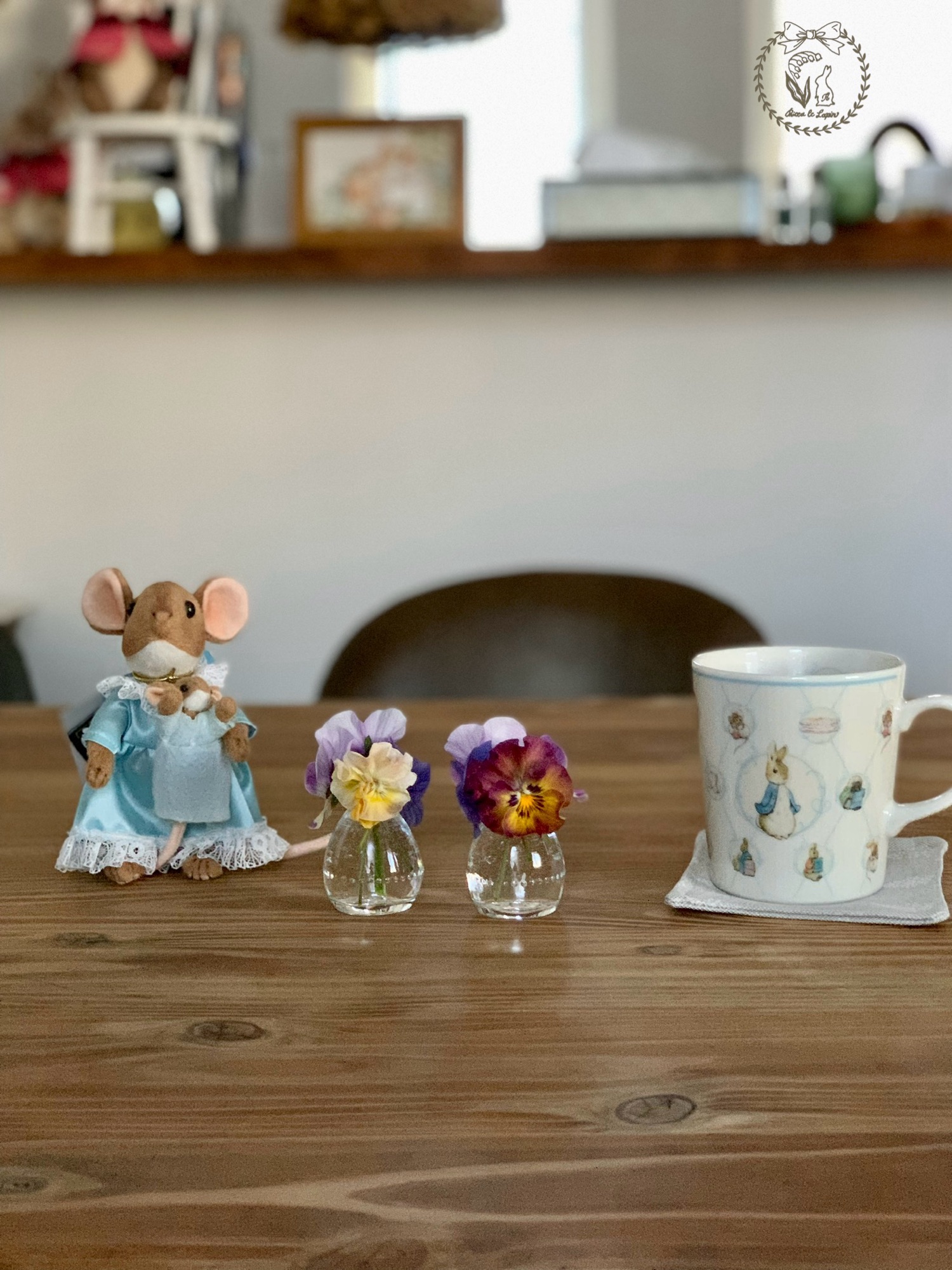 ピーターラビットのマグカップでお茶を飲んで一休みしながらこのブログを書いています。大好きなものに囲まれて本当に幸せです♡ちなみに、ターシャもビオラが大好きだったそうです◎