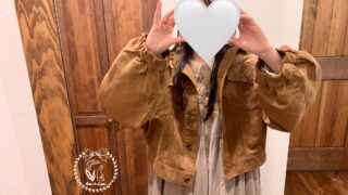 今日は、ポワンとした袖が可愛いシャツワンピースに、ベージュのベレー帽を合わせてみました◎シャツワンピだけだと寒いので、中にペチコートを履いています。