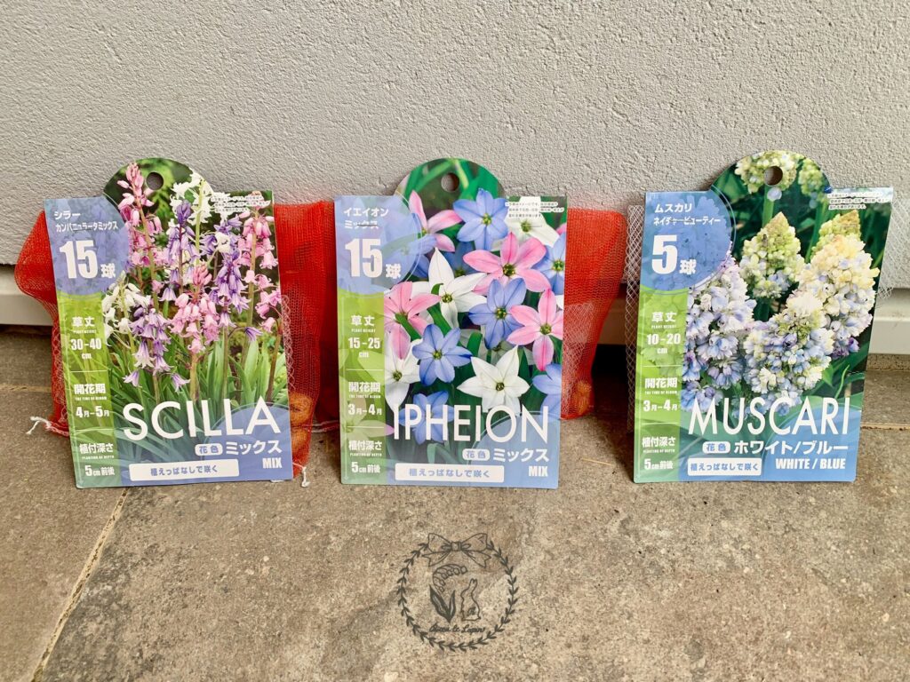 楽しみにしていた、右端のムスカリネイチャービューティーも◎