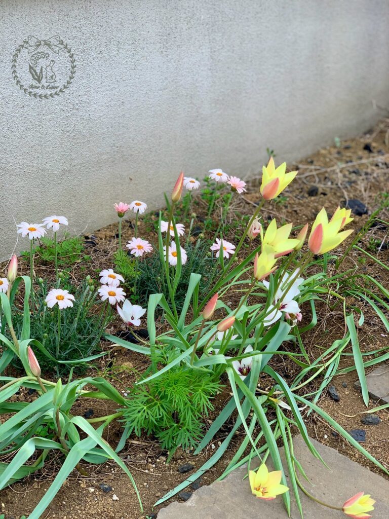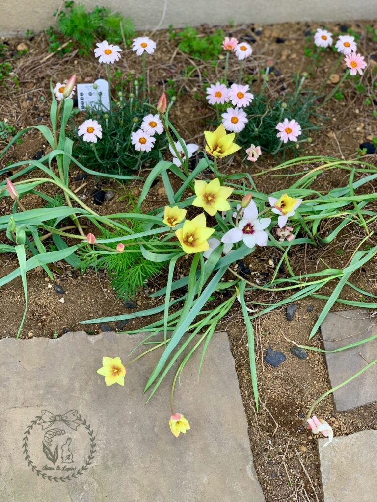 原種のチューリップの黄色が開花しました。黄色は去年の秋に植えたので、実物を見るのは初めてです。