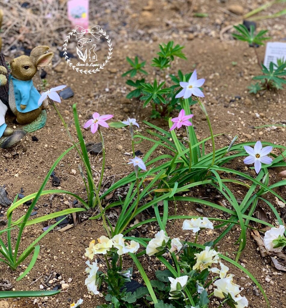 真ん中の球根、イエイオンのお花も咲きました。