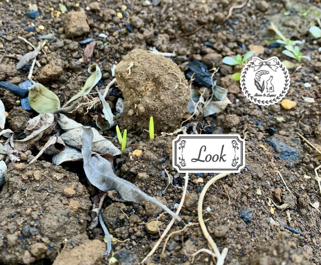よーく目を凝らしたら、球根の芽が出てきているのを発見!!