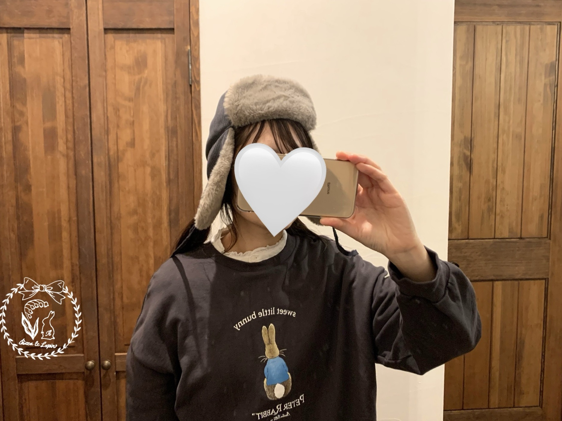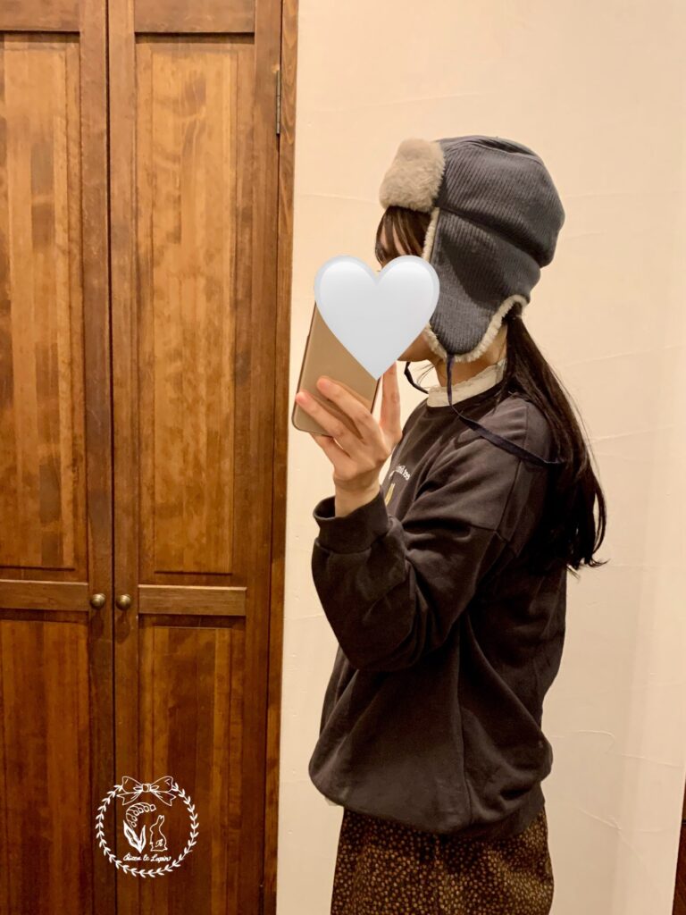 開店したばかりなのに行列ができており、外で待っている時間が長かったので、フライトキャップの耳を垂らしていました。耳が弱点の私にとって、耳を冷たい風から守るアイテムは欠かせません!