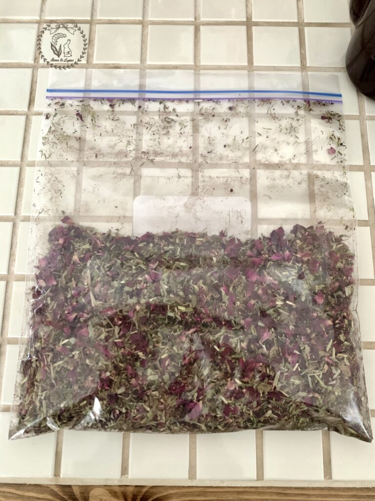 まず、ジップロックに移し替えて、ハーブの偏りがなくなるようによく振ります。ちなみに防腐剤不使用なので、このまま冷蔵庫で保存します。
