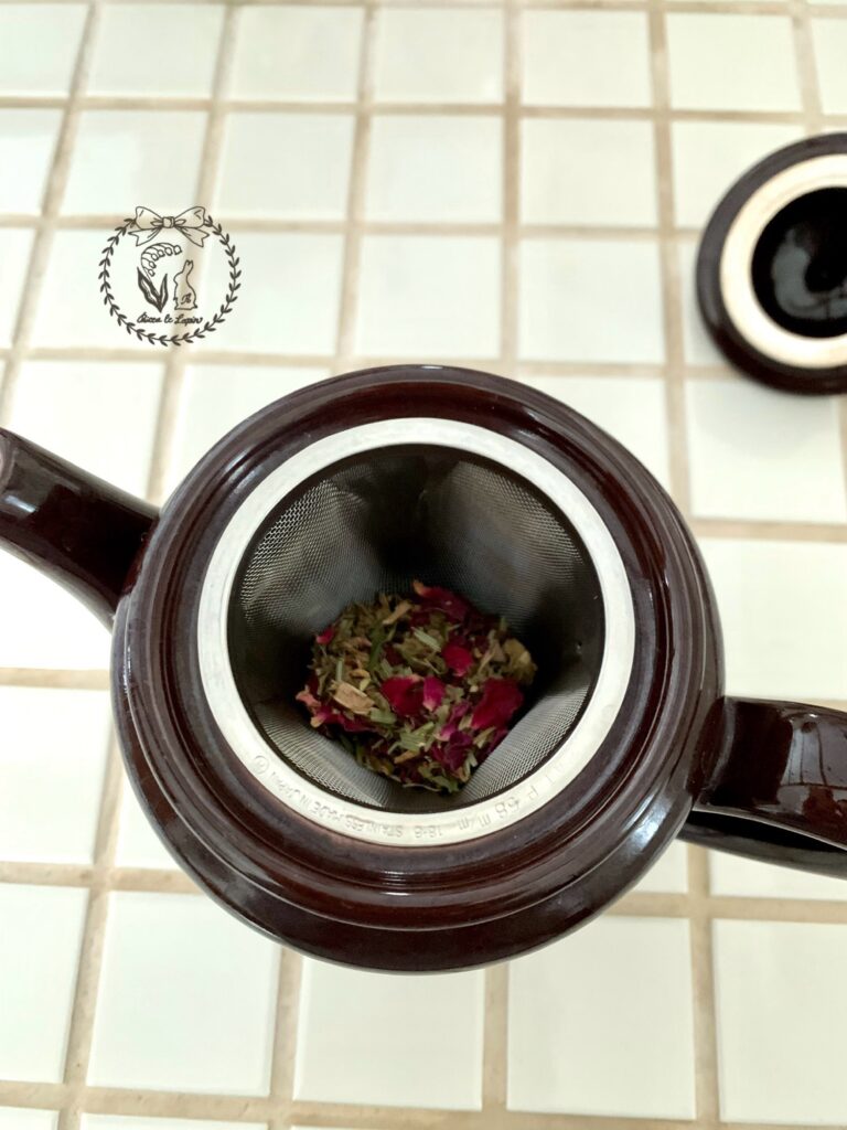 お湯を注いで5分ほど蒸らしたら、えぐみなどが出ないように茶葉は取り除きます。